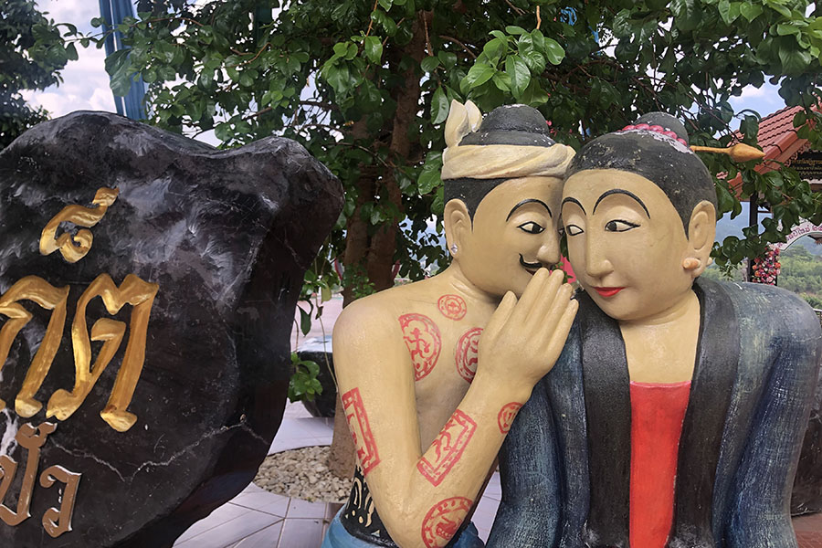There’s a couple I spot wherever I go in the northern Thailand province of Nan. He is bare chested with intricately tattooed legs; she is demurely dressed but smiles as he cups his hand and whispers in her ear. They pop up on tote bags and T-shirts and as fibreglass sculptures...